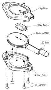 Position top case so slide switch extends through hole and close case.